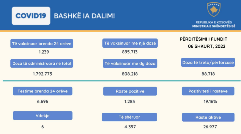06 Shkurt 2022: Ministria e Shëndetësisë, sipas të dhënave nga Instituti Kombëtar i Shëndetësisë Publike të Kosovës, informon:
