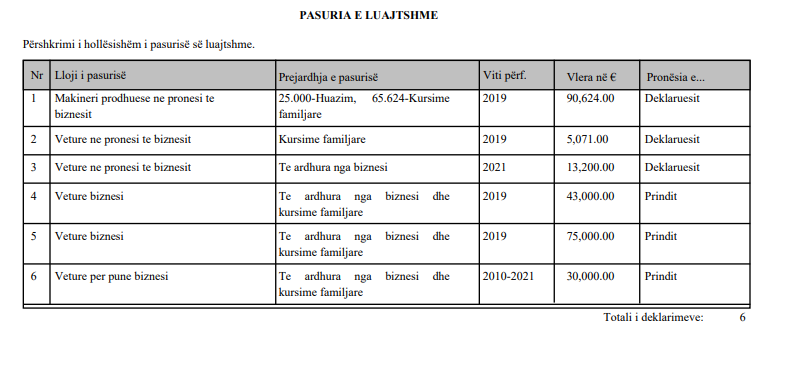 Në Agjencinë Kundër Korrupsion, Grainca ka deklaruar pesë vetura të biznesit.