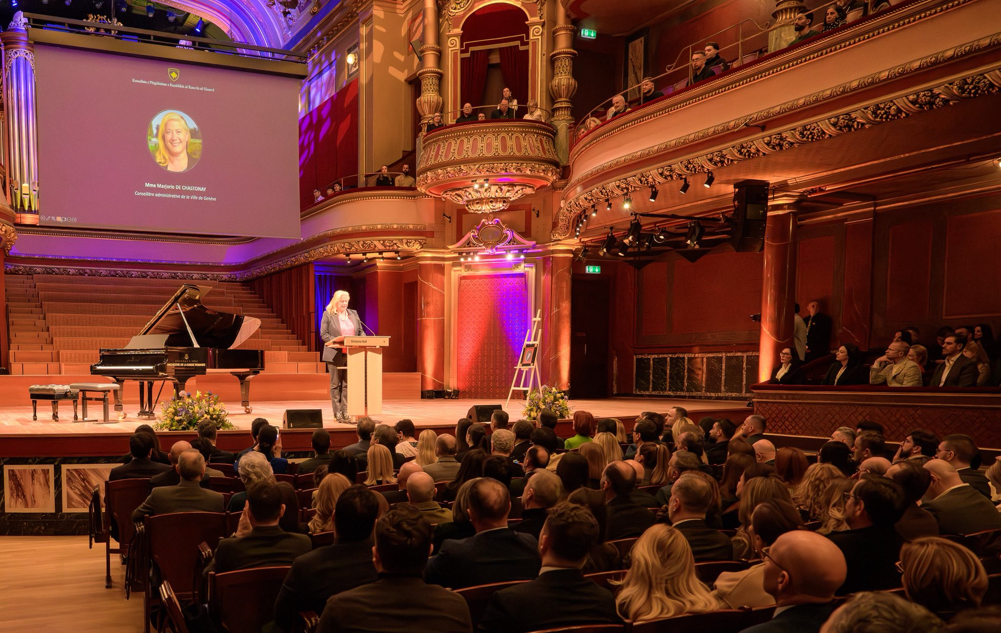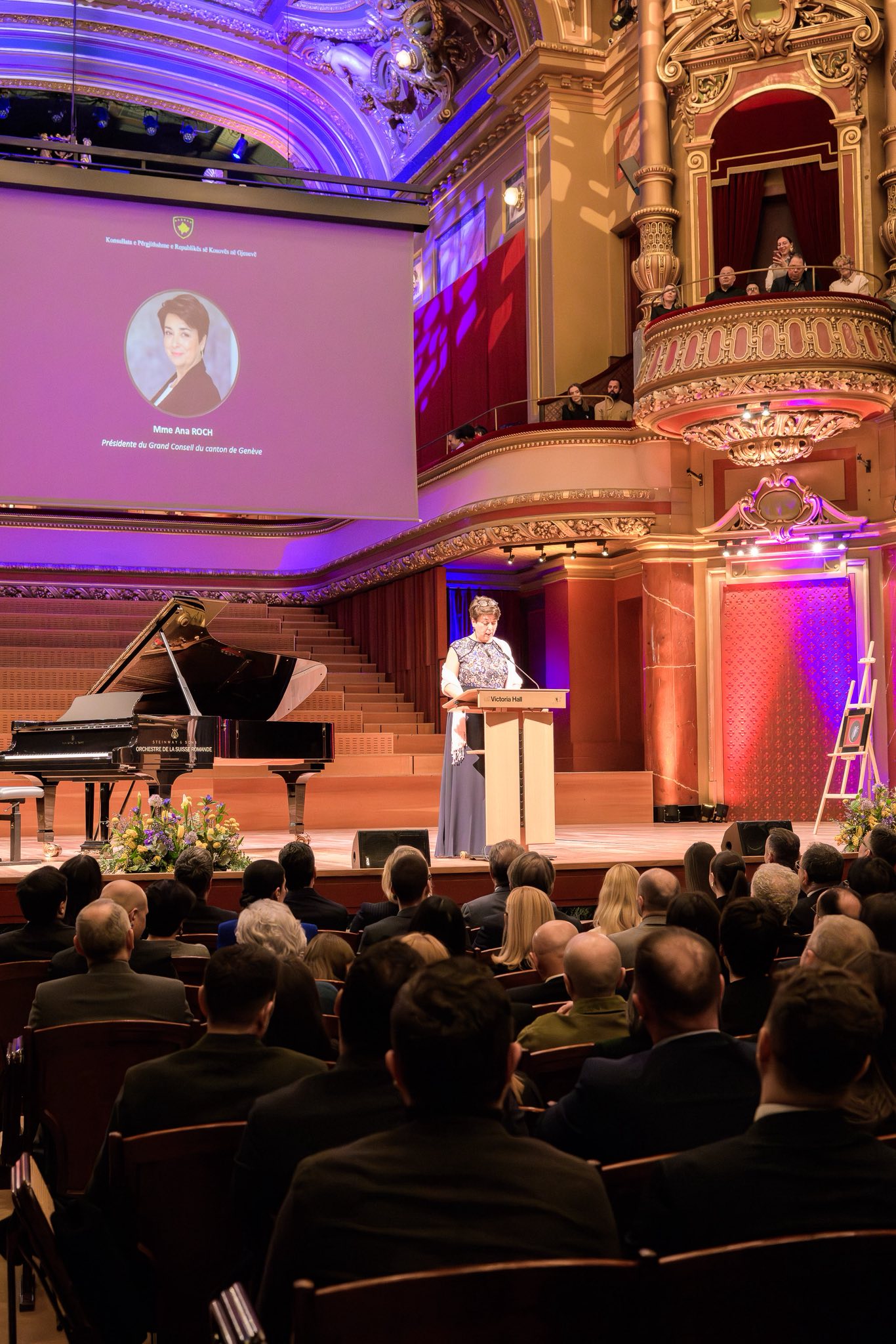Pritja u mbajt në sallën prestigjioze të qytetit të Gjenevës, Victoria Hall, me interpretimin e dy artistëve të njohur ndërkombëtarisht, Ramë Lahaj dhe Marigona Qerkezi, duke e bërë mbrëmjen një festë të veçantë, solemne dhe kulturore.