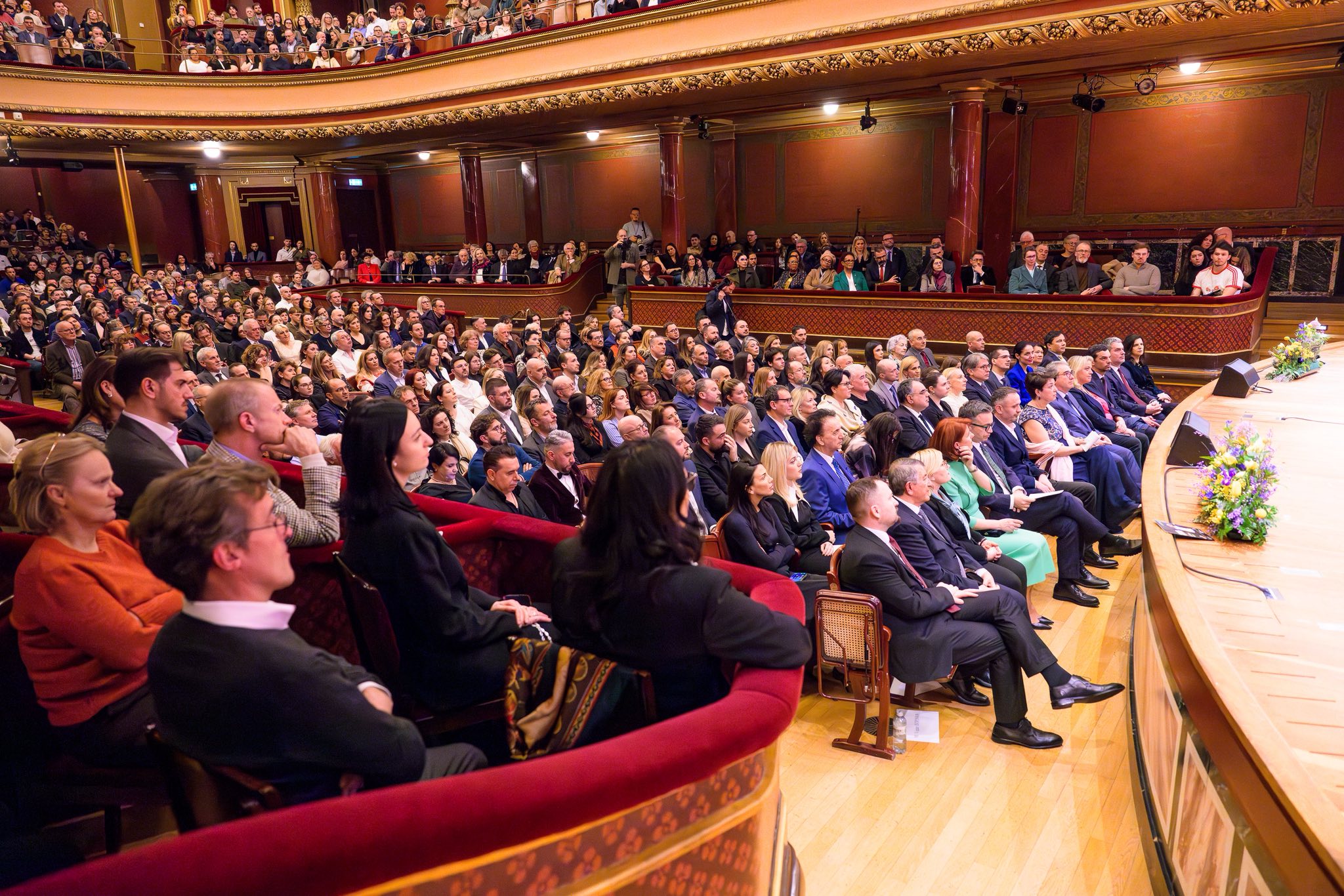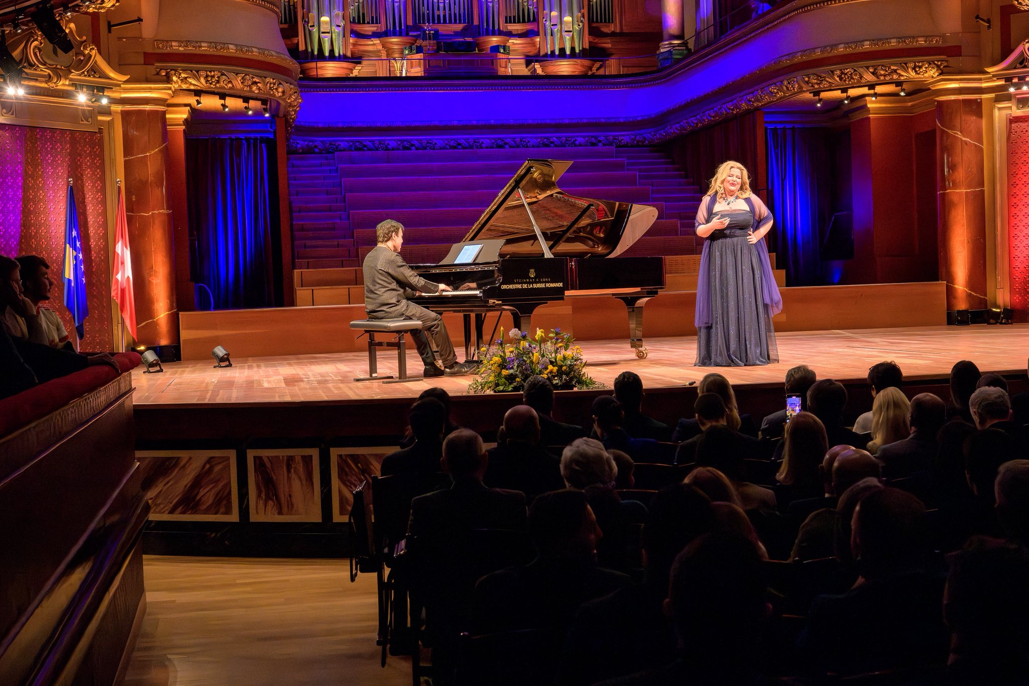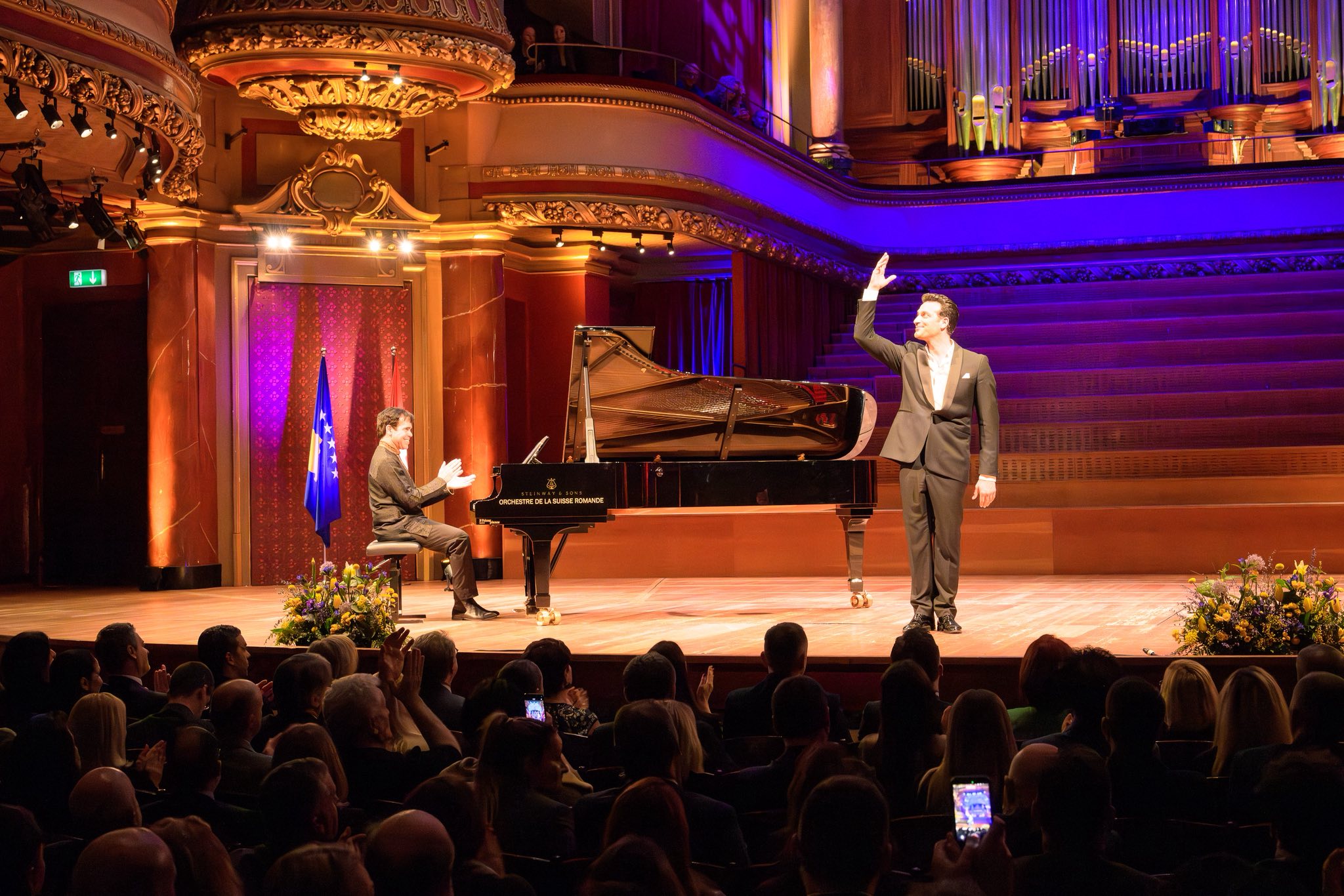 Një nga momentet më emocionuese të mbrëmjes ishte koncerti i dy artistëve shqiptarë me famë botërore, Ramë Lahaj dhe Marigona Qerkezi. Interpretimet e tyre klasike u pritën me duartrokitje të gjata, duke e shndërruar sallën “Victoria Hall” në një atmosferë madhështore dhe festive, ku muzika u bë ura lidhëse midis kulturës, interpretimit dhe emocioneve të bukura me këtë rast.
