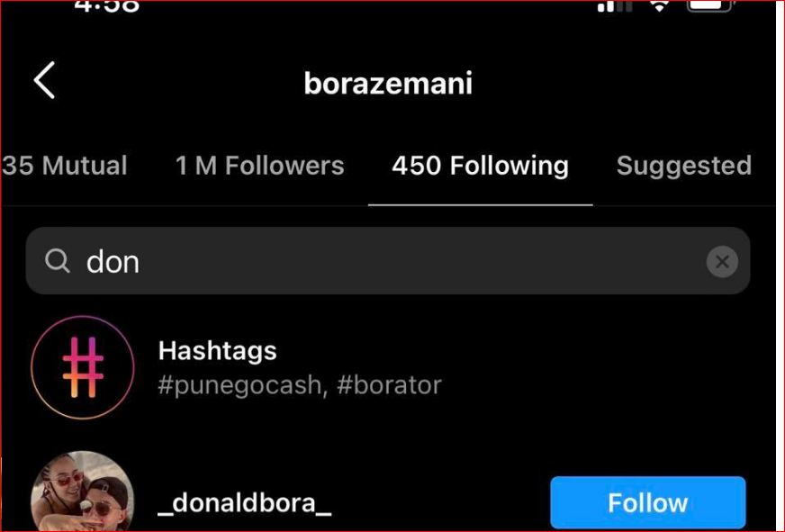 Mirëpo veprimi i fundit i Bora Zemanit ka befasuar të gjithë. Mbrëmë u vu re se Bora Zemani ndjek një faqe fansash në Instagram, “Donald Bora”.