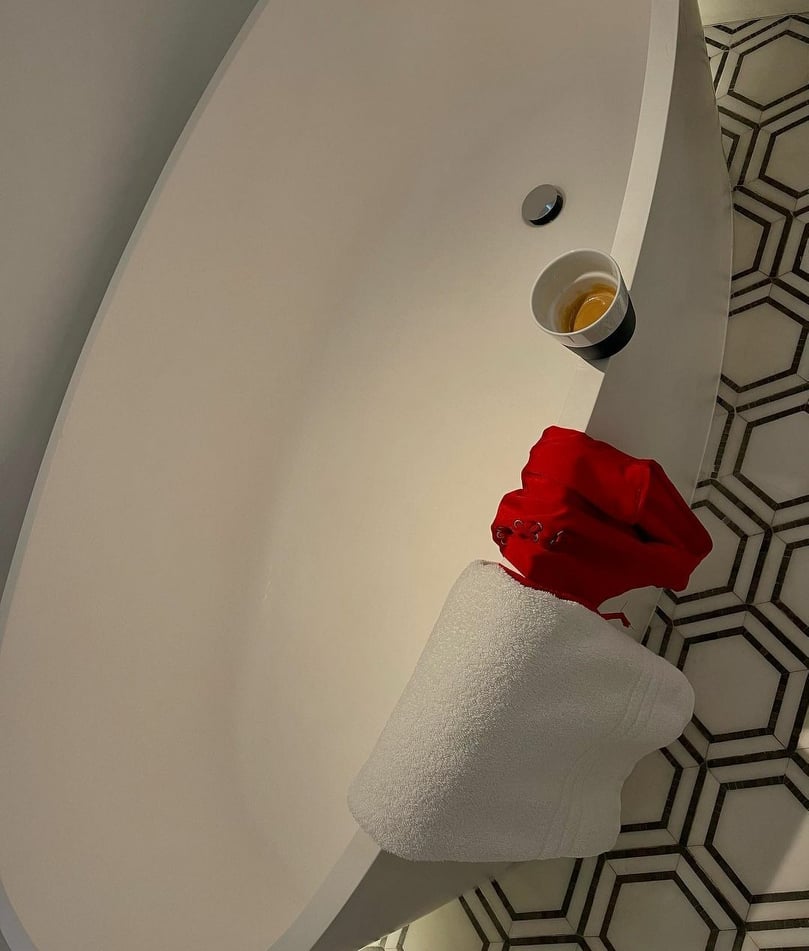 Aty shihet Agnesa e veshur me fustan të shkurt e provokues, ndërsa nuk kanë munduar as detaje nga dhoma dhe banjo të rregulluara me gjësende romantike.